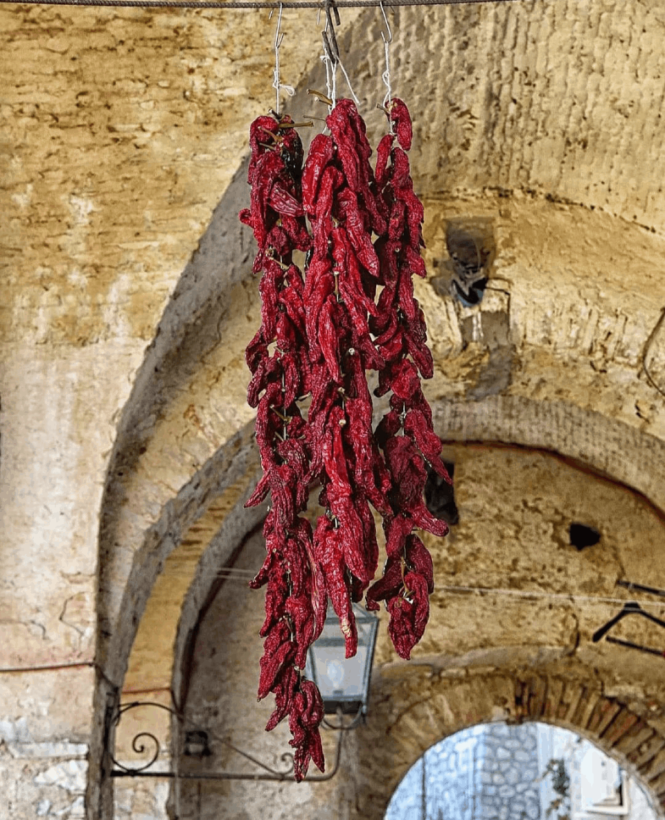 Il “peperone di Senise Igp”, conosciuto anche come “Oro Rosso” qualità unica nel suo genere dall’insolito sapore che conquista i palati di tutte le età, prodotto simbolo della tradizione gastronomica lucana. Dal sapore dolciastro, i peperoni cruschi di Senise sono proposti come antipasto, in primi e secondi piatti. Il peperone viene consumato sia verde che rosso, crudo o essiccato e ridotto in polvere, è il protagonista per preparare una vera prelibatezza.